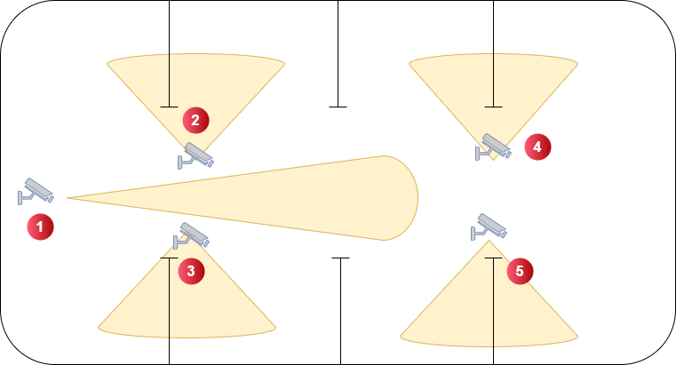 We will need 5 cameras installed in this area. I have also provide a map layout below as well.This run will be about 160 as well and can have wires run nakes inside.